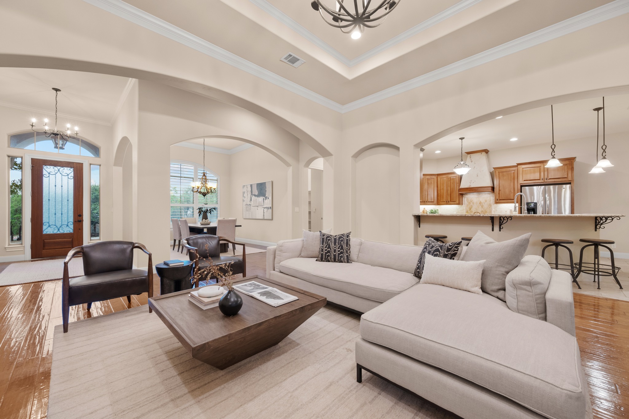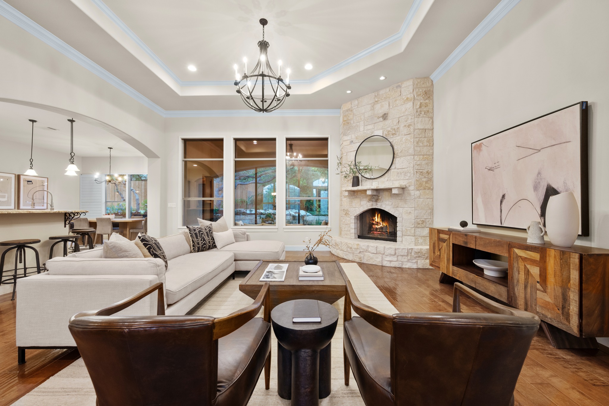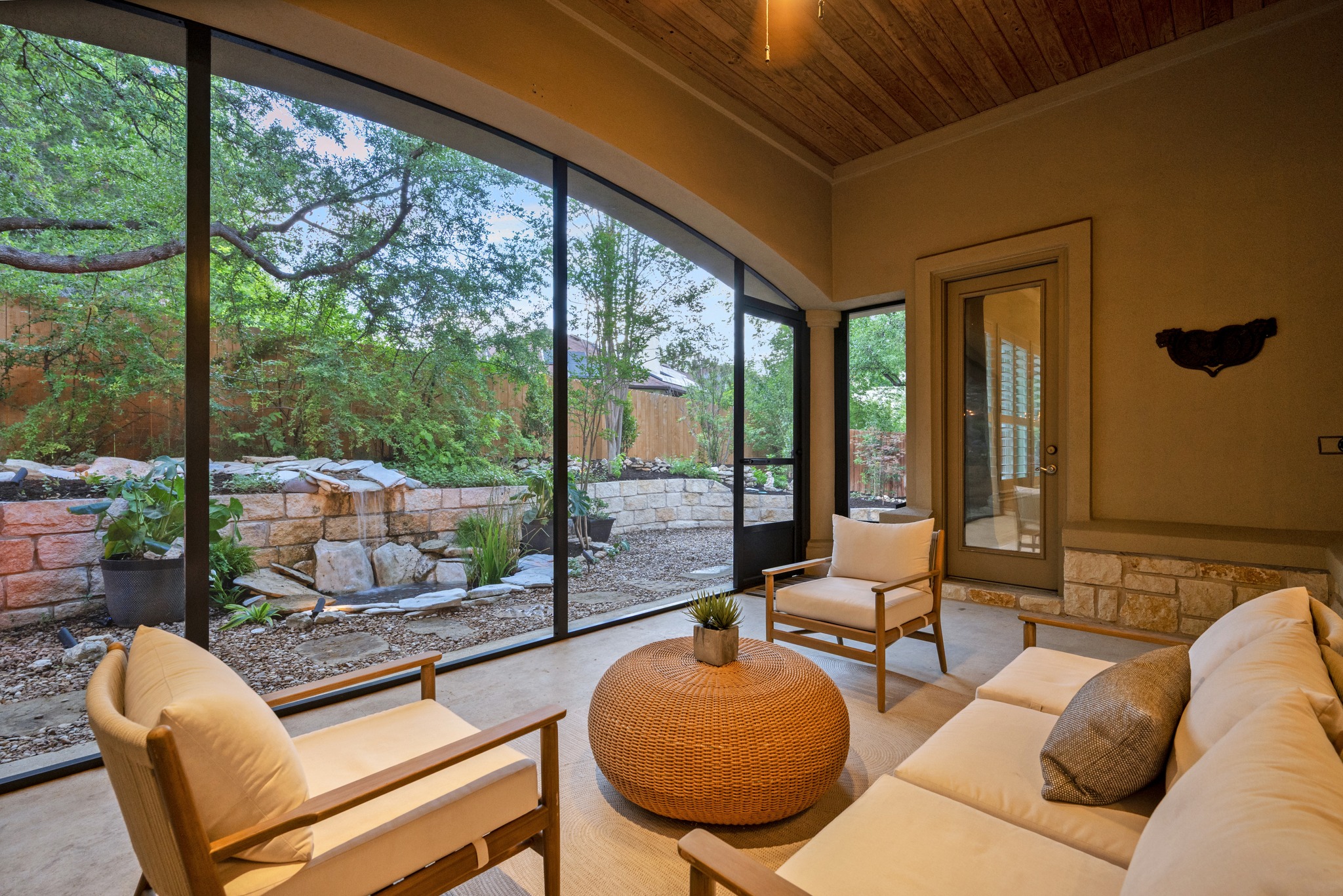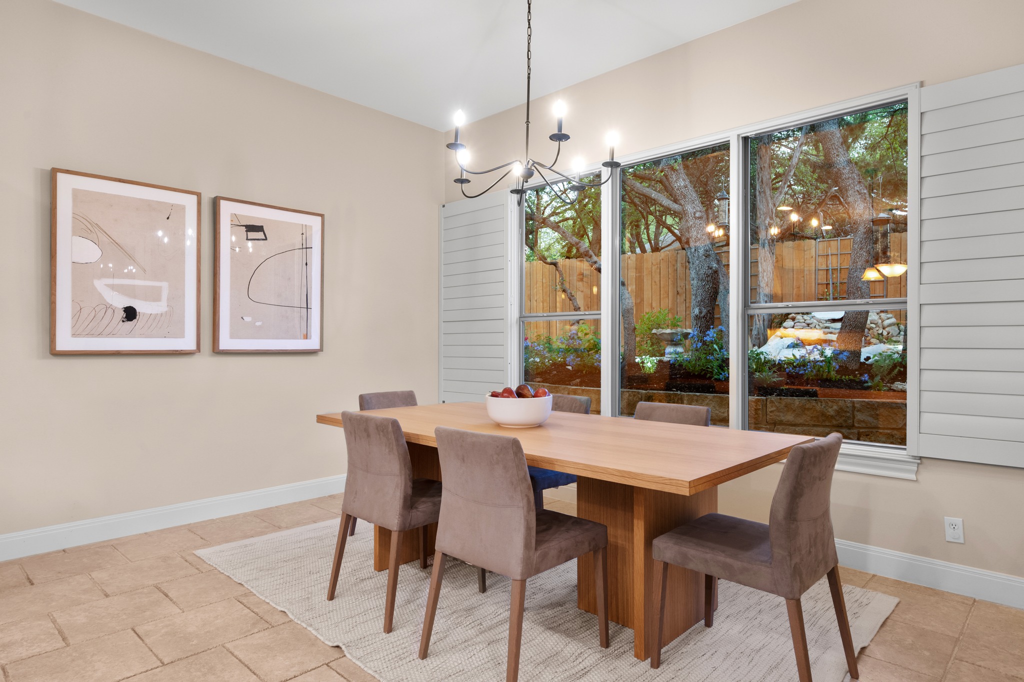 Sitting on an oversized lot in one of Lakeway’s best locations, this custom single-story home has a lot to offer—but it’s the details and backyard setting that truly make it stand out. Inside, the open floor plan feels spacious right away, with 12 to 13-foot ceilings, plantation shutters, wood floors, and travertine tile throughout. Arched openings and custom recessed and accent lighting give the home character, while the layout keeps everything feeling open and connected. The kitchen opens directly into the main living spaces where everyone gathers, featuring custom cabinetry, granite countertops, stainless steel appliances, a center island, and a wraparound breakfast bar—perfect for catching up or grabbing a quick snack. Out back is where this home really changes the mood. The covered patio sets the stage for a backyard that feels anything but ordinary, with a custom double waterfall and stream, lush landscaping, outdoor accent lighting, and mature oak trees that make the entire space feel secluded and serene. A screened-in patio provides a comfortable place to enjoy it all, while an additional patio with a fireplace adds even more to the setting. Perfectly positioned in the heart of Lakeway, this home offers unmatched access to the community’s most beloved amenities and year-round events. Right across the street are Café Lago and City Hall, placing you at the center of local gatherings—from the Christmas Trail of Lights to the 4th of July parade. Moments from the Hamilton Greenbelt and Lakeway Activity Center, this home offers effortless access to scenic trails, fitness, and premier recreation—including marinas, parks, pools, golf, pickleball, tennis, swimming, and volleyball—all within the award-winning Lake Travis ISD. Custom features, a truly standout backyard, and a location that puts so much within reach—this home brings together the very best of Lakeway living.