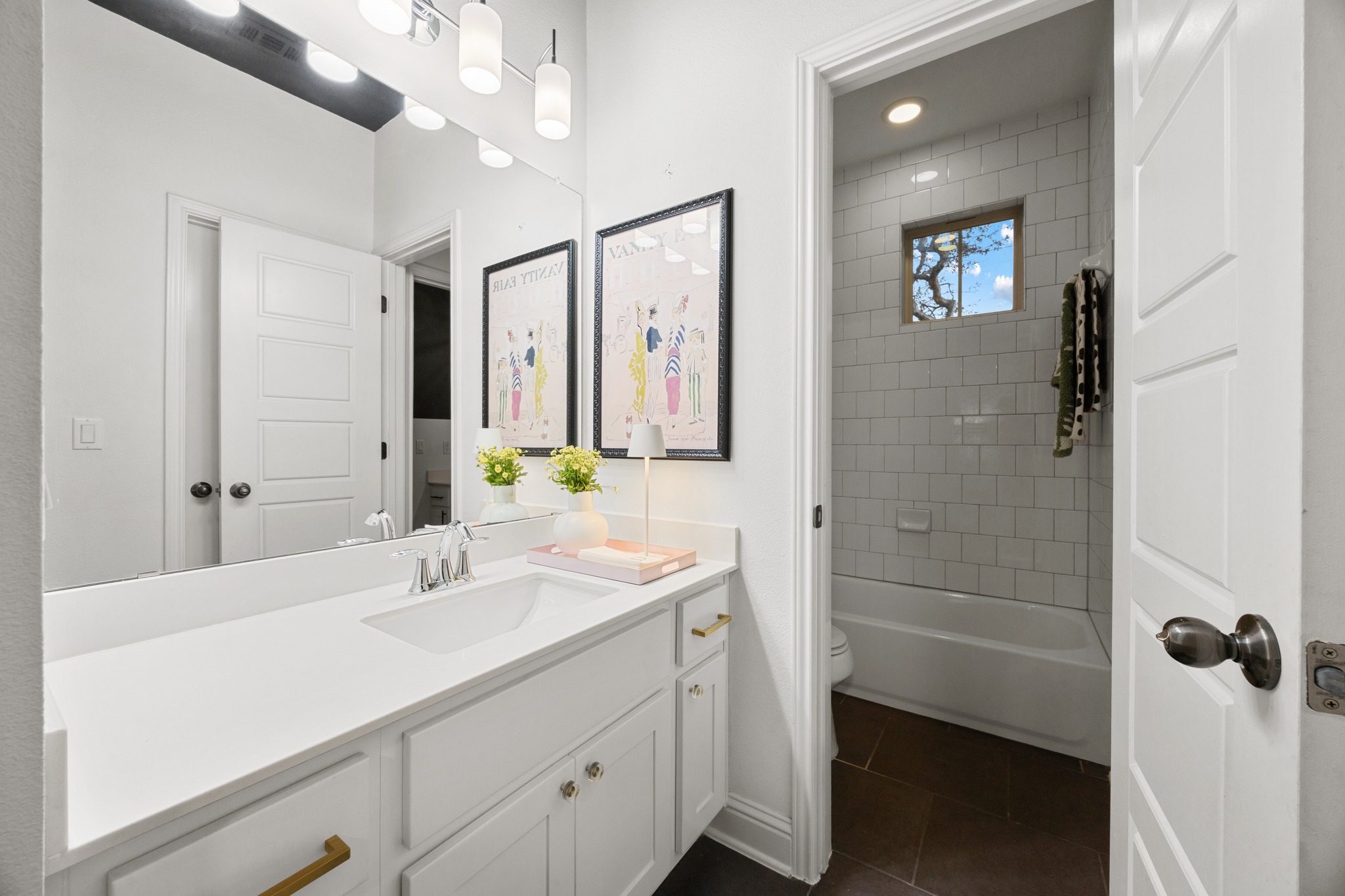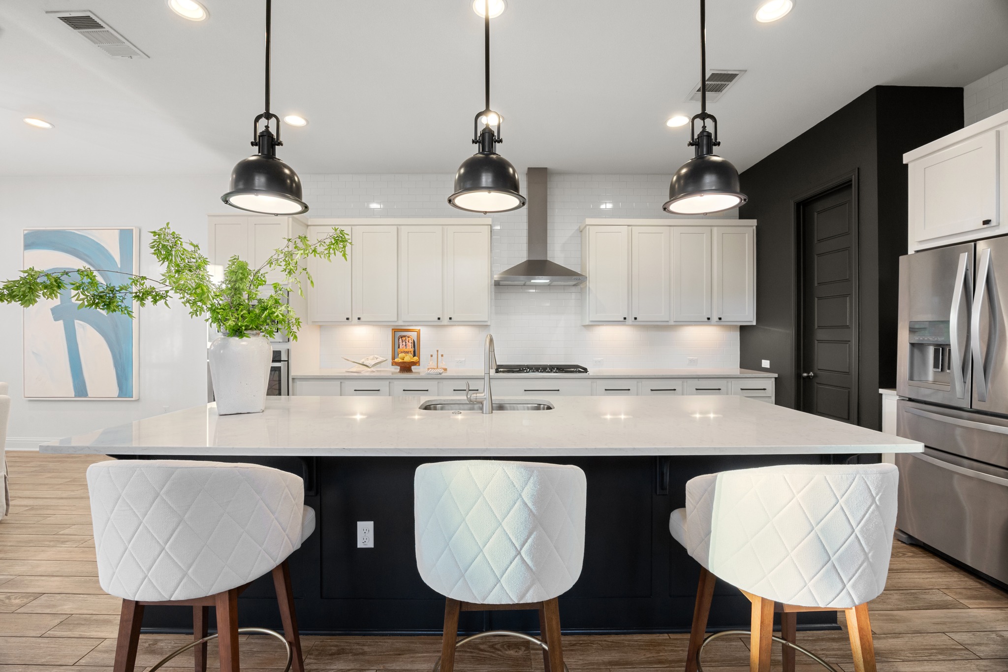 Set on a corner lot in Preserve at Four Points, this 4 BD, 3-BA home brings together style, flexibility, and a layout that makes sense. The main level feels bright and open, with the kitchen, dining, and living areas flowing together in a layout that works just as well for everyday life as it does for entertaining. In the living room, soaring second-story ceilings and clerestory windows bring in beautiful natural light and give the space an airy, elevated feel, while the fireplace wall adds just the right amount of polish. The kitchen is the natural gathering space with an oversized island, quartz countertops, stainless steel appliances, under-cabinet lighting, and a crisp modern look that keeps things feeling both clean and inviting. It’s the kind of kitchen that can handle everything from rushed mornings to dinner with friends without skipping a beat. One of the four bedrooms is tucked on the main level alongside a half bath, giving you a great option for guests, a home office, or a flex space that works around your life. Upstairs, the primary suite is spacious and well separated, complete with an ensuite that gives spa vibes and a walk-in closet. Two additional secondary rooms upstairs give you even more flexibility for kids, guests, work, or hobbies. Out back, the raised covered patio adds a great extension of living space, whether you’re hosting dinner outside or just enjoying a quiet evening at home. This is also a true lock-and-leave home, with the HOA maintaining all front yard landscaping so you can spend less time on upkeep and more time enjoying where you live. Community amenities include a dog park, children’s playground, barbecue areas, and visitor parking just across the street. All of this is in the highly regarded Leander ISD and minutes from Vandegrift High School, HEB, Target, and everyday dining and shopping, with Lake Travis, The Oasis, Volente Beach, The Domain, The Arboretum, and Downtown Austin all within easy reach. Buyer to verify all info