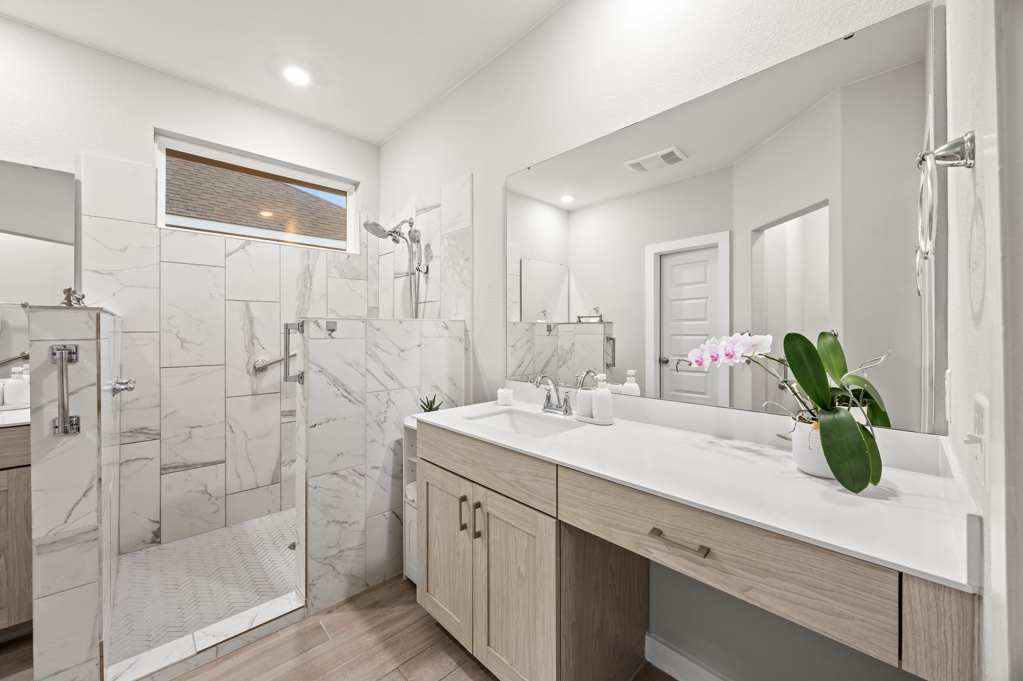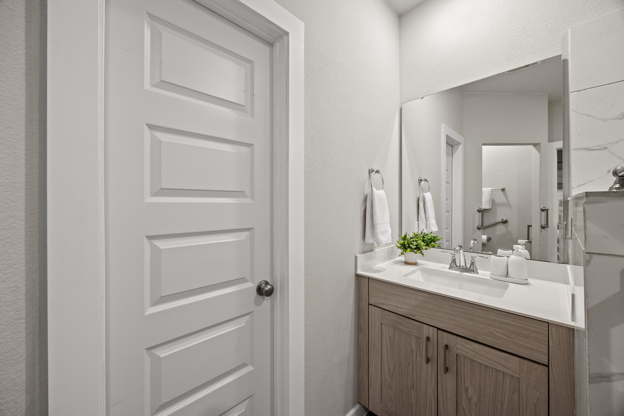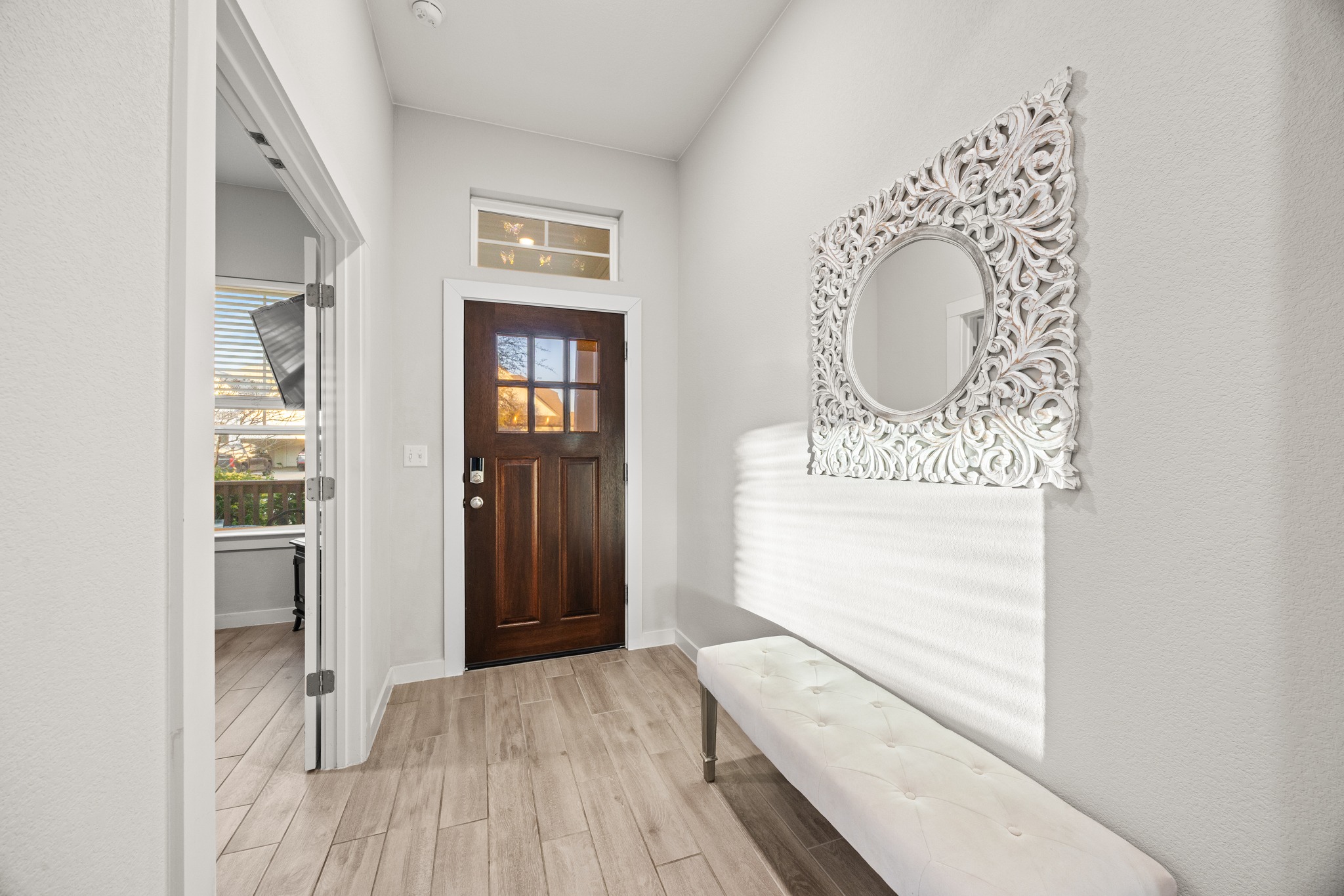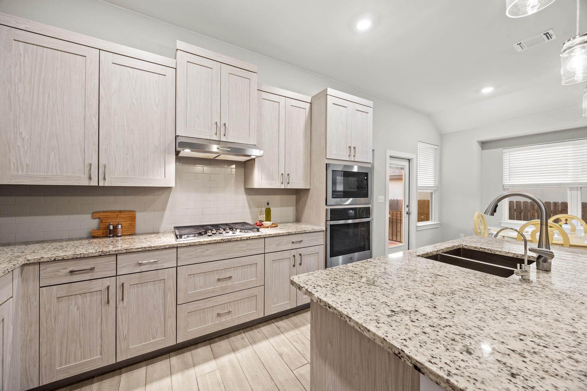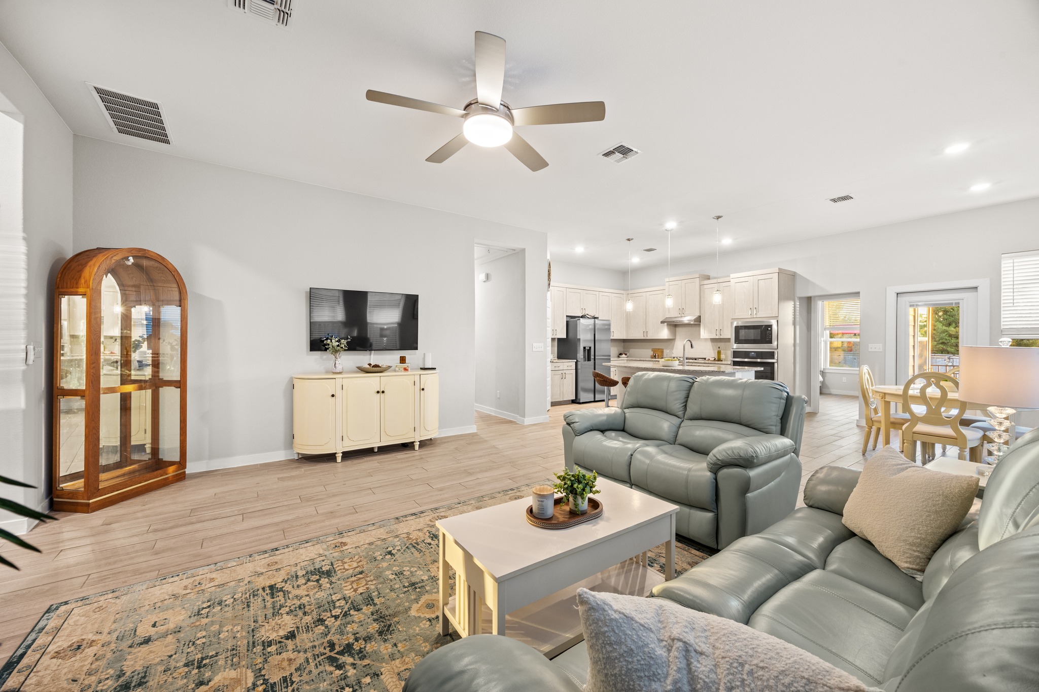 This home has a really inviting presence from the start, with a mix of stone and board-and-batten siding, soft neutral tones, and a front porch that adds just the right amount of charm. Inside, the layout opens up into one connected living, dining, and kitchen space that keeps everything feeling bright, comfortable, and easy to move through. Granite countertops, stainless steel appliances, and a center island anchor the kitchen, and it naturally becomes the spot where everyone gathers, whether it's quick snacks, casual dinners, or catching up at the end of the day. The floor plan is thoughtfully split, with the primary suite tucked on one side for a little extra privacy and two secondary bedrooms on the other. Both secondary rooms offer flexibility for guests or hobbies. A dedicated office at the front of the home adds another layer of versatility, giving you a quiet place to work, create, or simply close the door when needed. Out back, the covered patio wraps along the side of the home, creating a comfortable outdoor space. The home backs directly to the community pond and greenbelt, and a private gate gives you easy access, making walks and fishing part of your routine. Living here also means being part of the Bryson, a community built around connection and time spent outdoors. Trails wind through green spaces, gathering spots encourage neighbors to linger, and events bring people together in a way that feels natural and easy. The Backyard Amenity Center sits at the heart of it all, with a resort-style lagoon pool, river-style splash pad, playscape, galley bar, even-lawn, and more! From live music to movies by the pool, there’s something for everyone. All of it sits just minutes from CapMetro Light Rail and nearby toll roads for easy access to downtown Austin, the tech corridor, dining, and entertainment. A comfortable layout, direct pond access, and a community designed around getting outside make this one feel like more than just a home.