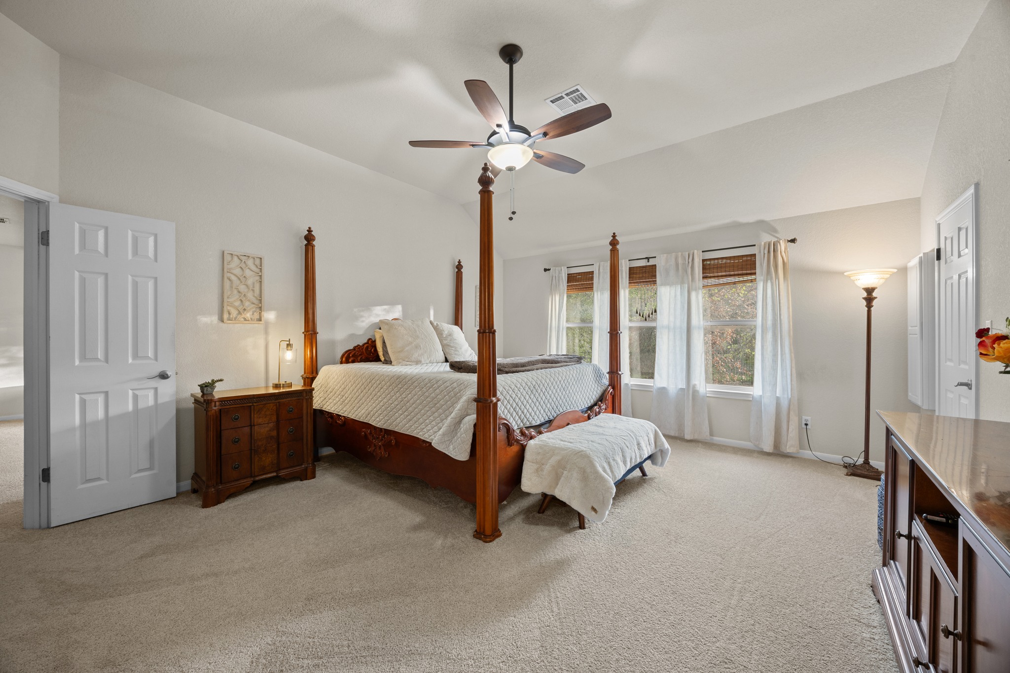 Sitting on a quiet cul-de-sac in Steiner Ranch, this home brings together the kind of setting people move here for: greenbelt views, mature oaks, and a backyard that feels private, peaceful, and very Hill Country. From the start, it has a warm, welcoming feel with a formal dining room and dedicated office at the front of the home. The main living area opens up nicely, bringing the kitchen, breakfast nook, and living room together in a way that feels connected and easy. Natural light fills the space, the fireplace adds a cozy anchor, and the kitchen keeps it all together with granite counters, SS appliances, a center island, a breakfast bar, and plenty of storage. Downstairs also includes a guest bedroom, which makes a great setup for visitors or anyone needing a main-level room. A nearby full bathroom rounds out the level. Upstairs, the layout keeps going with a spacious loft that can work as a game room, second living area, or media space. The primary suite is on its own hallway for a little more privacy and includes a walk-in closet and ensuite bath. Two additional bedrooms sit down a separate hallway with another full bathroom, giving everyone their own space. Out back you will find a covered patio that opens to a shaded yard framed by mature oaks and backed by the greenbelt, creating the kind of outdoor space that makes it easy to slow down and stay awhile. The community adds to the appeal. This is one of those communities people get excited about for good reason, with access to pools, parks, pickleball, dog parks, boat ramps, trails, and all kinds of ways to get outside and enjoy where you live. Whether it’s kayaking, fishing, tennis, sand volleyball, or just taking in the views, this is a neighborhood that makes it easy to stay active and connected. A home with space, a great layout, and a location that brings the lifestyle with it. Buyer to verify all info.